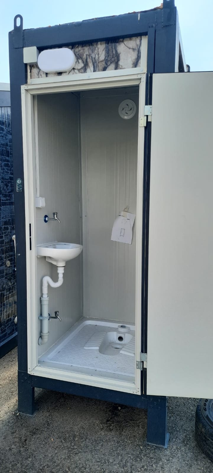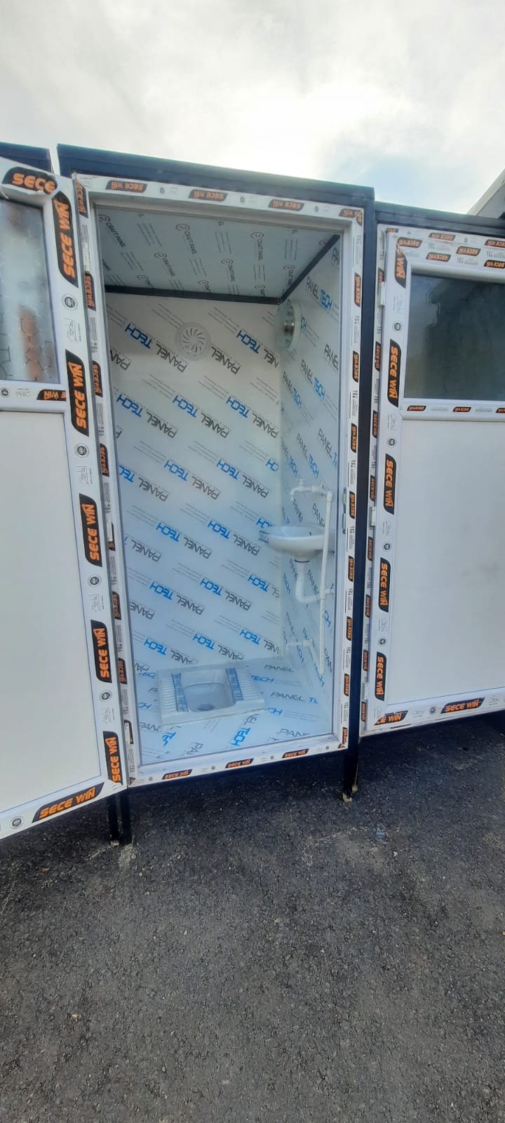 🔹 Engelli Dostu Tuvalet: Geniş kapı ve ergonomik iç tasarımıyla herkesin kullanımına uygun model.